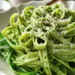 Ein einfaches und köstliches Rezept für Bärlauchnudeln mit frisch zubereitetem Bärlauchpesto und Parmesan.