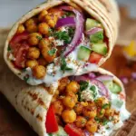 A delicious and nutritious Chickpea and Feta Wrap filled with fresh vegetables and a creamy yogurt sauce.