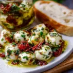 Besonders an heißen Sommertagen ist dieser eingelegte Mozzarella eine willkommene Abkühlung. Er eignet sich hervorragend als Teil eines Buffets, einer Grillfeier oder als Begleiter zu einem Glas Wein. Da die Aromen nach ein paar Stunden der Marinierung noch intensiver werden, ist er ideal zum Vorbereiten. Er ist nicht nur schmackhaft, sondern auch gesund – die Kombination aus frischen Kräutern, Olivenöl und frischem Käse ist ein Fest für deinen Körper und Geist.
