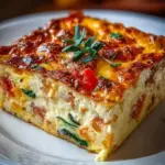 Ein köstlicher und nahrhafter Eierauflauf mit Hüttenkäse, Gemüse und Käse – perfekt für ein herzerwärmendes Frühstück.