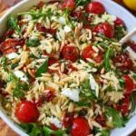 Wenn Sie nach einem Gericht suchen, das Genuss, Farbe und Geschmack miteinander verbindet, dann ist dieses italienische Orzo-Salat-Rezept genau das, was Sie brauchen. Versammeln Sie Ihre Lieben, genießen Sie das Kochen und lassen Sie sich von den Aromen Italiens verzaubern. Bereiten Sie sich auf strahlende Gesichter und zufriedene Magen vor – dieser Orzo Salat wird zum Star Ihres nächsten Essens! Bereit zu kochen? Der italienische Genuss wartet auf Sie! 🍴🍅✨