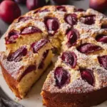 Ein goldbraun gebackener Kuchen, dekoriert mit saftigen, violetten Pflaumen – ein wahrer Genuss, der Familie und Freunde zusammenbringt.