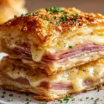 Köstliche, knusprige Blätterteig-Stapel mit herzhaftem Schinken und würzigem Käse, perfekt als Snack oder Vorspeise.