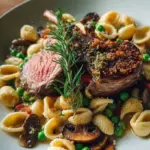 Zarte Lammhüfte kombiniert mit nussiger Orecchiette-Pasta in einer cremigen Rahmsoße – ein festliches italienisches Gericht, das sowohl Geschmack als auch Aroma vereint.