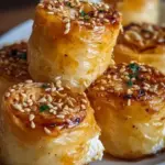 - Servieren: Nehmen Sie die heißen Feta-Rollen aus dem Ofen und beträufeln Sie sie großzügig mit der Chili-Honig-Sauce. Optional können Sie die fertigen Rollen mit Sesamsamen bestreuen und warm genießen.