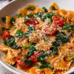 Schmetterlingspasta mit Tomatensauce und Spinat entführt Ihre Geschmacksnerven in ein italienisches Paradies. Jeder Bissen ist ein kleiner Moment des Glücks, der zum Genießen und Teilen einlädt. Nehmen Sie sich Zeit, um die Aromen zu erleben, während Sie diese köstliche Kombination zubereiten und genießen Sie das Gefühl von Wärme und Zufriedenheit am Tisch. Kochen Sie es heute Abend und lassen Sie den Duft Ihrer Küche die Vorfreude verbreiten – es wird mit Sicherheit ein Hit!
