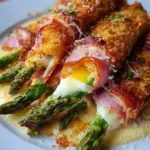 Ein köstliches Gericht, das frischen Spargel, zarten Schinken und schmelzenden Käse kombiniert und von einer knusprigen Panade umhüllt wird.