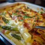 Ein köstlicher Spargelauflauf mit zartem Gemüse, herzhaftem Schinken und cremiger Sauce, perfekt für besondere Anlässe.