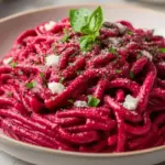 Die vegane Pink Pasta mit cremiger Rote-Bete-Soße ist nicht nur ein festlicher Blickfang, sondern bietet auch einen köstlichen Gaumenschmaus. Diese einfache, aber beeindruckende Rezeptur begeistert sowohl Veganer als auch Nicht-Veganer gleichermaßen. Sie vereint gesunde Zutaten mit einem einzigartigen Geschmack, der Sie und Ihre Gäste überraschen wird. Warten Sie nicht länger – zaubern Sie sich heute Abend diese unwiderstehliche Pasta, und lassen Sie sich von jedem Bissen verführen!