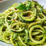 • Rezeptvariationen: Probiere es aus, indem du geröstete Pinienkerne und Sonnenblumenkerne für unterschiedliche Geschmäcker verwendest! Wenn du einen zusätzlichen Biss möchtest, brate die Zucchini-Nudeln leicht in einer Pfanne an.