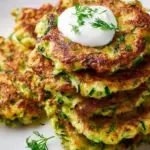 Knusprige Zucchinipuffer, die perfekt als Snack oder Beilage sind und mit frischen Kräutern verfeinert werden können.